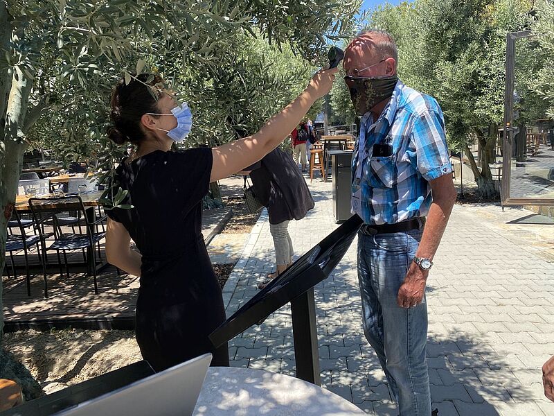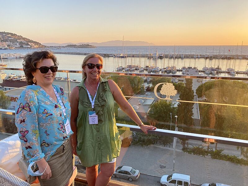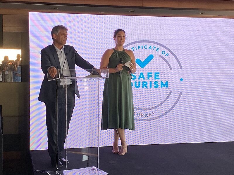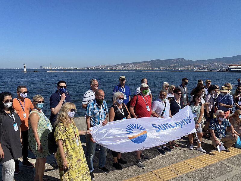 Auf dem Weg zum Botschafter für Türkei-Urlaub: Michael Schober von Sun Express und ta-Chefredakteur Matthias GürtlerBeim Empfang am Flughafen waren auch TV-Sender vor Ort…… hier beim Interview mit Seval Coskun von Aroha ReisenAuftaktabend auf der Dachterrasse der Chamber of Commerce in IzmirDer Stadtrundgang führte auch an der Promenade von Izmir entlangVor dem Uhrturm von Izmir:Alexandra Zaitseva von Orange Touristik mit Bastian Wipfler (Reisebüro Holzapfel)Der Entspannung im Urla Vineyard…… mit gutem Wein…… folgte ein exklusives Mittagessen im Od Urla RestaurantAuch vor dem Restaurant-Besuch wurde den Gästen die Temperatur gemessenVon links: Zoran Maric von ZM Touristik, Gül Cinar (Reisecenter Alltours), Christine Basak Lewin (My Travel Company), Rainer Schlage (ISRC Reisebüro), Petra Schmitt Mauer (P2 Reiseportal) und Silke Heinrich (Reisebüro Reisetraum)Neuer Standard: Fiebermessung im Hotel, hier bei Torsten Pessel vom Reisebüro zur Alten BäckereiPool des Korumar Beach Hotel. Die familienfreundliche Anlage verfügt über einen…… herrlichen, flach abfallenden SandstrandStolz auf das Gütesiegel "Safe Tourism": der stellvertretende türkische Tourismusminister Nadir Alpaslan, rechts von ihm Esra Güler (TGA)Zum Sunset-Drink ging es auf die Terrasse des Double Tree by Hilton in KusadasiKirsten Krause (links) von Reisen und Erleben mit Andrea Katschak vom Reiseservice HeekAbendstimmung in KusadasiAuf antiken Spuren (von links): Thomas Becker (Reisebüro am Ostpark), Cetin Asaf (Alltours Reisecenter), Torsten Pessel…… und Gabriela Neumeier (Reise und Touristikservice) in EphesusDie Gruppe vor der berühmten Celsius-Bibliothek in EphesusBianca Schwarzenberg (Reisebüro Freizeittreff, links) und Annette Liese Trube (Reisebüro Fella) beim Abschlussabend auf einem Weingut bei Kusadasi"Schön, dass Ihr diese Tour mit uns gemacht habt": Sun-Express-Manager Michael Schober sagt "Danke"PCR-Covid-Test vor dem Abflug am Aiport IzmirSonderservice: Eigener Check-in für die Famtrip-TeilnehmerLeerer Airport – aber vier Sun-Express-Starts nach Deutschland innerhalb einer StundeÇok teşekkürler, vielen Dank, liebe Türkei!