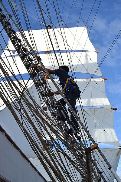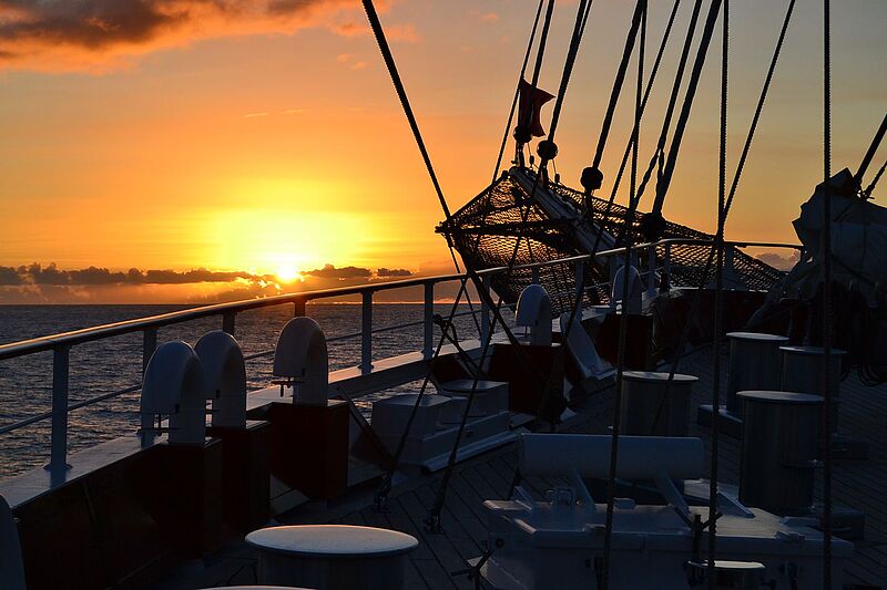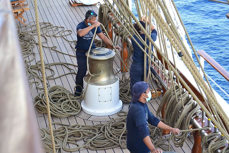 Der elegante Windjammer Sea Cloud Spirit vor La GomeraImposant: der Dreimaster unter SegelnDie maritim gestalteten Junior-Suiten……bieten sogar einen BalkonDie Farbe Gold setzt Akzente im BadezimmerAuch die Flure auf den Kabinendecks wirken geräumigPremiere auf einem Sea-Cloud-Segler feiern das Fitnessstudio……und der Spa-BereichDie Spirit wird von Hand gesegeltDas Schiff bietet großzügige AußendeckflächenGebaut wurde der Großsegler im spanischen VigoWenn die Seeleute in die Wanten steigen……wird das Segelsetzen zu einem SchauspielFast 30 Segel zählt die Sea Cloud SpiritAn Bord ist Segeln noch HandarbeitBlick auf die BrückeRückzugsort: Die helle Bibliothek im vorderen Teil des SchiffesEin Auszug aus dem Light Lunch an der Lido BarMit einer ähnlichen, kleineren Glocke wird abends zum Dinner geläutetAbendlicht an DeckDen Sonnenaufgang können Gäste auch vom Vorschiff aus genießen