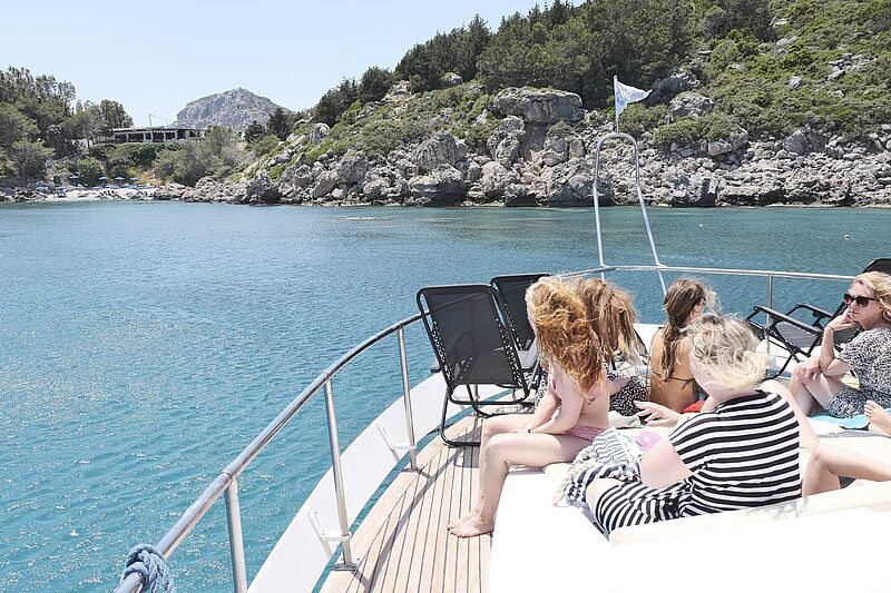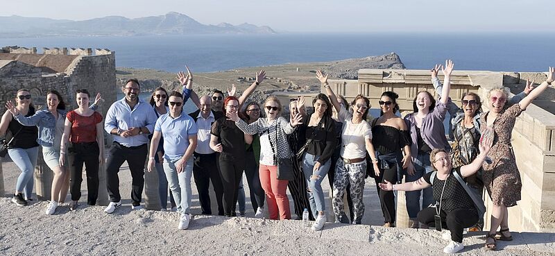 Rhodos-Fans von links: Sabine Paunovic von Anja’s Reisebüro, Christa Otto vom Reisebüro Ferienwelt Mainz, Sophia Renk vom Reisebüro Frank und Susanne Brand vom Reisebüro Reisewelt 24. Fotos: ahKurs auf die Anthony-Quinn-Bucht: die Teilnehmer der FTI Expidition RhodosGruppenteilnehmer während einer Site-Inspection auf RhodosMalerisch: die Anthony-Quinn-Bucht auf RhodosWeinprobe auf dem Weingut Anastasia Triantafylou im lauschigen Hinterland von RhodosGriechisch kochen: Expedientin Christa Otto (Mitte) packt mit anFührung durch das antike Dörfchen LindosLindos im Abendlicht von der Akropolis ausTeilnehmer der Inforeise im Fünf-Sterne-Haus Princess Andriana Resort & Spa (von links): Sabine Paunovic, Christa Otto, Nermin Erdogan, Hakan Oegmen (Sales-Manager FTI), Tamara Schwab, Sophia Renk und Sinem DoganDer Mandraki-Hafen von Rhodos-StadtViel Wissenswertes über das Hotelprodukt gab es auf Site-InspectionsHakan Ögmen von FTI auf dem WeingutAbkühlung bei 27 Grad: Da kam der Yacht-Ausflug gerade richtigGruppenfoto vor den Toren der Ritterstadt in Rhodos-StadtUnd noch einmal die Gruppe auf der Akropolis oberhalb von Lindos…… wo die Reiseverkäufer ausführlich Selfies machten, hier Julia Schröder vom Lufthansa City Center Reisebüro Übersee und Marc Pascal Umlauff vom Reisebüro StepholtDie Expis erkunden Rhodos-StadtNochmal die FTI-Fahne zücken: Gruppenfoto vor dem Princess SunJamas: Die Counter-Expertinnen Julia Schröder, Luisa Pereira Antunes, Charlotte Stöttner und Marie-Claire Höfler