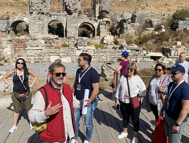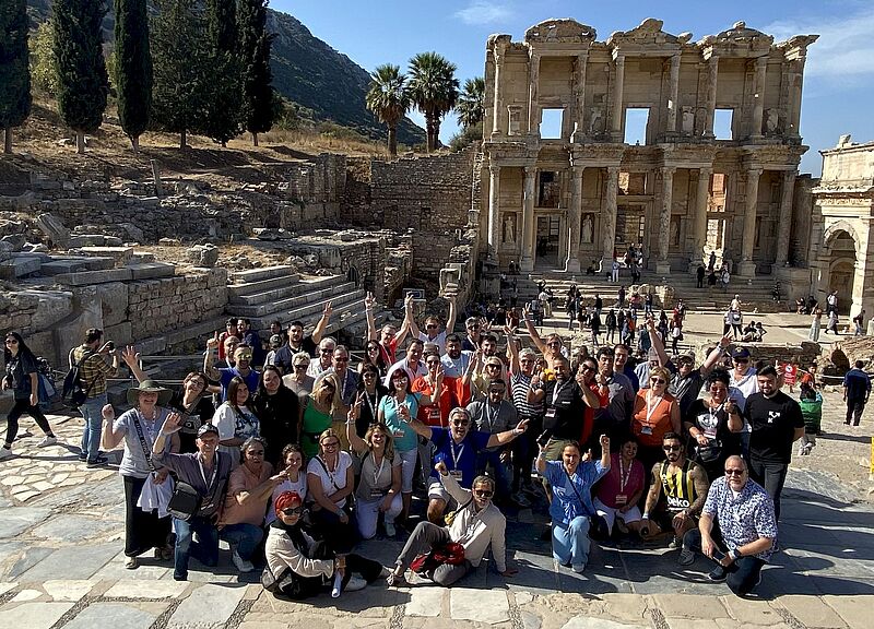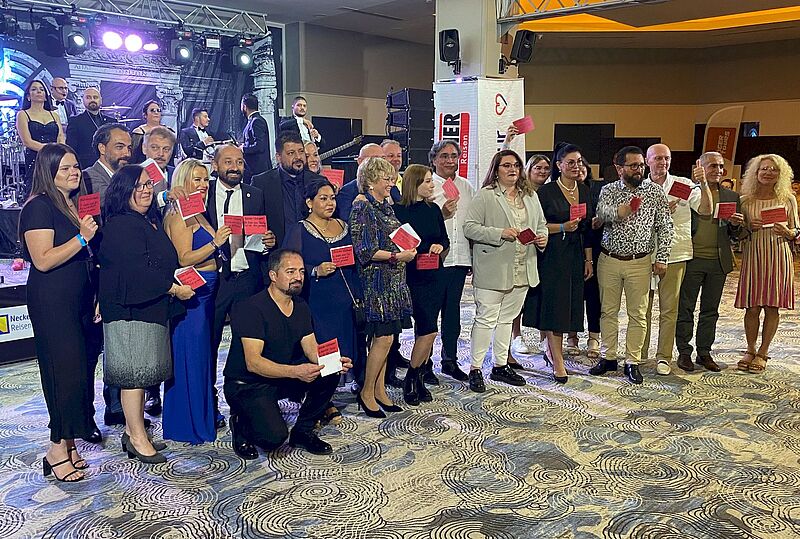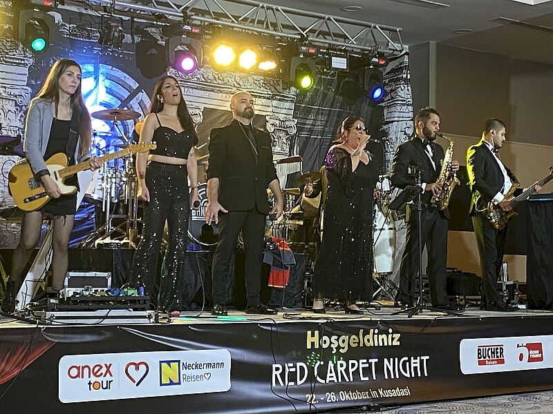 Die Gruppe „EGE“ vor der antiken Bibliothek von EphesusEmpfang im All-inclusive-Resort Palm Wings EphesusGastgeber: Murat Kizilsac, Chef von Anex Tour Deutschland (links) mit Carsten Burgmann, der der Marke Neckermann Reisen wieder Schwung verleihen sollAnex in Deutschland: ein Unternehmen, vier MarkenDer Eröffnungsabend fand am Strand…… inklusive Lagerfeuer stattDas Hauptgebäude des Palm Wings Ephesus bei NachtMusik und Show zum Auftakt der ProgrammpräsentationInessa Sachanenko vom Reisebüro Voyage mit Elena Tropina vom Reisebüro Elena Tropina und Mikhail Kliteinikov von Ost-West ReisenBei der Reisemesse präsentierten sich viele Hotelpartner, darunter das Double Tree by Hilton in Bodrum mit Melis Akgün (rechts), hier mit Petra Sträutker von „Das Reisebüro“ in GeorgsmarienhütteNatalia Pal vom Reisebüro Pal in Osnabrück am Stand des Club Marma Hotel BodrumMit Selectum Blu Cruises verfügt Anex Tour auch über ein eigenes Kreuzfahrtschiff mit Fahrten ab/bis BodrumTürkische Gastfreundschaft: Leckereien in der PauseReiseleiter Volkan führte eine der Gruppen durch das antike EphesusChristina Göhrl von Öger Tours (rechts) mit Stephanie Parsche vom Reisebüro LaboeFatma Köroglu von Mar-Tur Reisen in Wuppertal mit Kazim Ceylan von Orient Touristik in BochumDie berühmte Fassade der antiken Bibliothek von Ephesus„Tschüss Stress, hallo Planschen“: Die von Thomas Cook übernommene Marke Neckermann Reisen erlebte in diesem Jahr ihren NeustartDas Palm Wings Ephesus liegt an einem breiten, flach abfallenden Strand. In unmittelbarer Nähe befindet sich das TUI Blu Aquapark Hotel & SpaErgänzend zum Haupt-Pool gibt es auch einen Activity-PoolMusikalischer Empfang zur Red Carpet NightDie Efes-Band sorgte für beste Stimmung unter den 170 ReiseverkäufernEin Dankeschön an alle Partner, hier die Erfurter Reisebüros Mein Reiseportal24 (rechts) und Reise-Shop Stotternheim mit Mehmet Karapinar von Singold Tours in Königsbrunn (links)Glückliche Gewinner: 20 Reiseverkäufer gewannen Flugtickets der Anex-Fluggesellschaft Mavi Gök AirlinesSonnenuntergang vom Hauptgebäude des Palm Wings Ephesus aus gesehenDanke für die schönen Tage: Flugpartner des dritten Red-Carpet-Events von Anex Tour war einmal mehr Sun Express