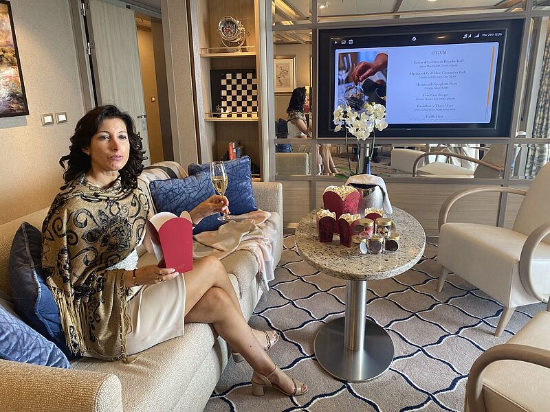 Die Silver Dawn ist das zehnte Schiff der Silversea FlotteTaufte das Schiff aus dem Theater heraus: TV-Star und Travel Writerin Nilou MotamedTaufpatin Nilou Motamed während des Feuerwerks vor der Kulisse LissabonsPool-Deck der Silver Dawn während der Tauf-Party in LissabonNeues Highlight an Bord: Das Wellness- und Kulinarik-Konzept Otium…… kann sowohl im Spa- und …… Wellness-Bereich als auch …… in der Suite erlebt werden.Die Pool-Decks werden in den Abendstunden auch als Restaurant genutztZum neuen S.A.L.T.-Konzept gehört, dass Gäste die jeweiligen regionalen Gerichte selbst kochen könnenDas Frühstück wird auf Wunsch in die Kabine gebracht – gerne auch inklusive ChampagnerEinfahrt in Lissabon: Kreuzfahrtschiffe legen direkt vor dem Altstadtviertel Alfama anDer Lissabon-Ausflug im Rahmen des S.A.L.T.-Konzepts führt in den Time Out Market von RibeiraSilversea-Gäste können dort an einem Koch-Event teilnehmenKlassiker im Ribeira-Markt: der Fischstand RosanamarGibt gemeinsam mit Roberto Martinoli bei Silversea die Richtung vor: Barbara MuckermannDie Marke Silversea Cruises steht für Luxus mit Super-All-inclusive