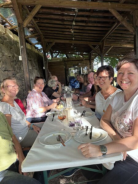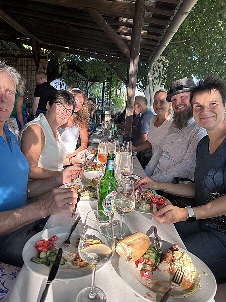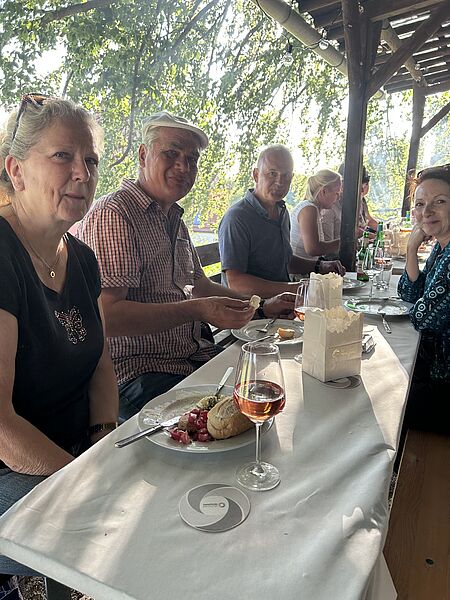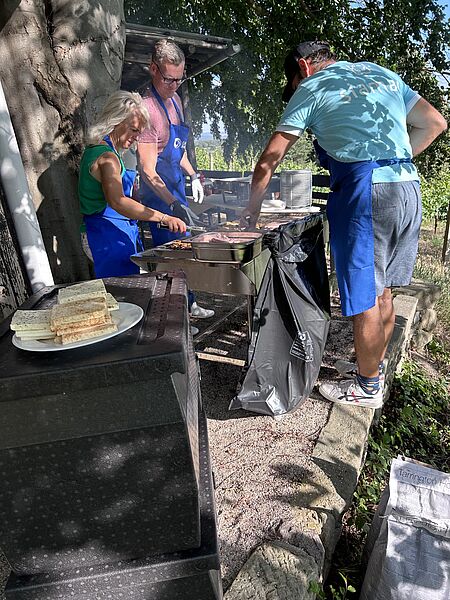 Das Team hinter Grill und Zapfhahn: (von links) Michael Riebel, Jana Petzold und Andreas Quenstedt.Weinbergkirche in Pillnitz und die umliegenden Weinberge bieten die perfekte Einrahmung. Fotos: Deutscher ReiseringDie Vorbereitungen sind abgeschlossen, die Gäste können eintreffen.Es wird angerichtet.Jana Petzold (Vorstand) am Grill.Die Gäste sind im Anmarsch.Es wird geschlemmt…geblödelt…gelacht…und eine Rede gehalten – ein Dankeschön an Katja Blaesner, die Weinbergpächterin vom Reisebüro Blaesner & Zimmer aus Heidenau.Hier lässt es sich aushalten.Glückliches Trio: (von links) Sabine Gasch, Dagmar Burdack und Jana Petzold (Vorstand).Die Aussicht ist traumhaft und die Getränke gekühlt. Im Vordergrund Thomas Nietz, Leiter Informationstechnologie.Prost: Hansi Reichmann und Jana Petzold (Vorstand).Hervorragende Tropfen Wein.Michael Riebel (Vorstand) zu später Stunde.Ein herrlicher Abend geht zu Ende.