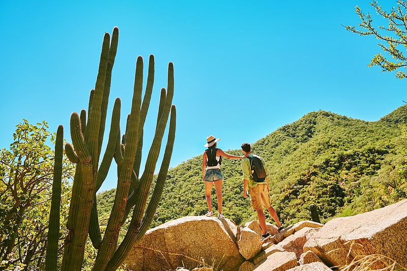 Zwischen November und April kommen Grau- und Buckelwale in der Gewässer rund um die Halbinsel Baja California. Foto: Visit Los CabosBlick in den Yachthafen von Cabo San LucasAm Yachthafen von Cabo San Lucas gibt es auch ein Breathless-HotelMit der tollen Tu enamorado kann man auch mehrtätige Touren machen, Kontakt www.wildcabotours.comDer Famtrip Los Cabos freut sich über das frisch zubereitete Essen an Bord der Tu enamoradoTagtäglich fahren Boote Reisende zum bekannten Lovers Beach bei Cabo San LucasDAS Symbol von Cabo San Lucas: die Granitfelsformation El ArcoAn der Ostküste der Baja California liegt der Nationalpark Cabo Pulmo, hier kann man schnorcheln … Foto: Visit Los Cabos… oder die Region mit dem Geländewagen kennelernen. Foto: Angelika ArdeltIm Nationalpark Cabo Pulmo gibt es viele der riesigen Kakteen … Foto: Visit Los Cabos… und den ein oder anderen Wasserfall. Foto: Angelika ArdeltDie Baja California ist die Halbinsel der KakteenDer Ort Todas Santos gehört zu den Pueblos Magicos, den magischen Orten MexikosHier gibt es auch ein Hotel California,viele Maya-Ornamente,viele Fotomotive und …… einige RestaurantsAuf der Hacienda Santa Terra wurde einst Zuckerrohr verarbeitetHeute sind hier Restaurants, wie Oystera, …wo es Austern in verschiedenen Zubereitungen gibtMan kann drinnen und draußen essenErinnerung an die Zuckerrohrverarbeitung. Auf dem Gelände Santa Terra ist auch ein Hotel geplantIn San Jose del Cabo kann man wunderbar am Strand reitenSehr viel Spaß macht dies zum Sonnenuntergang, Anbieter ist Bonanza HorsebackGolf Pro Ergül Altinova schwärmt von den Greens, wie hier vom Solmar Golf Links. Er bietet mit Emu Inclusive Travel Golf- und Luxusreisen an. Foto: Ergül AltinovaDonnerstags wird in San Jose del Cabo ein Art Walk angeboten. Der Ort ist heimeliger als San Jose del CaboIn Los Cabos gibt es auch Anlagen wie das Acre Resort, mit Kochkursen, normalen Villen … Foto: Angelika Ardelt… und Baumhäusern, die hier zugegeben schwer zu erkennen sind. Foto: Angelika ArdeltSonnenaufgang im Hacienda del Mar, dem ehemaligen SheratonInfinitypool im Hacienda del MarUngewöhnliche Lage: Vom quirligen Cabo San Lucas fährt man durch einen Tunnel und erreicht das ruhige Waldorf AstoriaClaudia Majunke von Majunke International Sales vertritt Visit Los Cabos in Deutschland, hier im Bild mit Tobias Bening von Ikarus ToursStrand im Waldorf Astoria, das allen Famtrip-Teilnehmer sehr gut gefallen hatDas Mar del Cabo bietet Apartments und erinnert an ein griechisches DorfDas Grand Velas ist ein luxuriöses All-inclusive-Reort, das mit Andreas Schmidt einen deutschen Director General hatStrand am Grand VelasIm Grand Velas wird auch viel für Kids gebotenDiesen Blick haben die Urlauber beim Check-in im Marquis Los Cabos. Foto: Angelika ArdeltDas Marquis Los Cabos hat direkte StrandlageSonnenuntergangsstimmung im Marquis Los CabosStrand am Marquis Los Cabos, geht man einige Meter weiter, darf man auch im Meer badenEiner der Pools im Marquis Los CabosBlick in das Zadun, a Ritz-Carlton ReserveErdige Farben wechseln sich im Zadun, a Ritz-Carlton Reserve …… mit bunten Restaurants abFreundliche Mitarbeiterin in einem der CafesEine der Villen im Zadun, a Ritz-Carlton ReservePool und Strand im ZadunLanger Strand am ZadunTobias Bening (Ikarus Tours) an einem der Pools im Nobu Los CabosAlice Hansemann (Argentum) vor einer der Villen im Nobu Los CabosDas Nobu Los Cabos ist minimalistisch gestaltet ….. und bietet auch Swim-up-SuitenZum Famtrip gehörte auch ein Travel Mart …… hier Enrica Arend, Direktor Dertour DeluxeAuf Wiedersehen in Los Cabos, die freundlichen mexikanischen Kinder freuen sich über deutsche Gäste