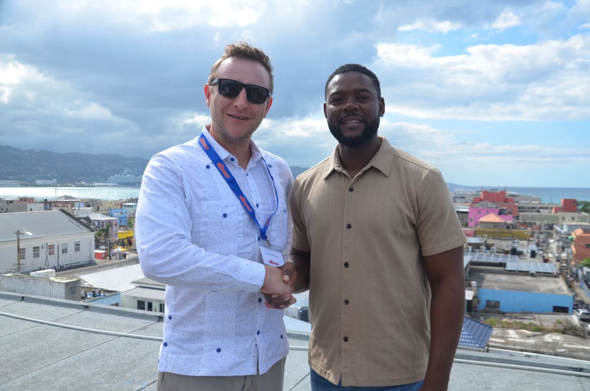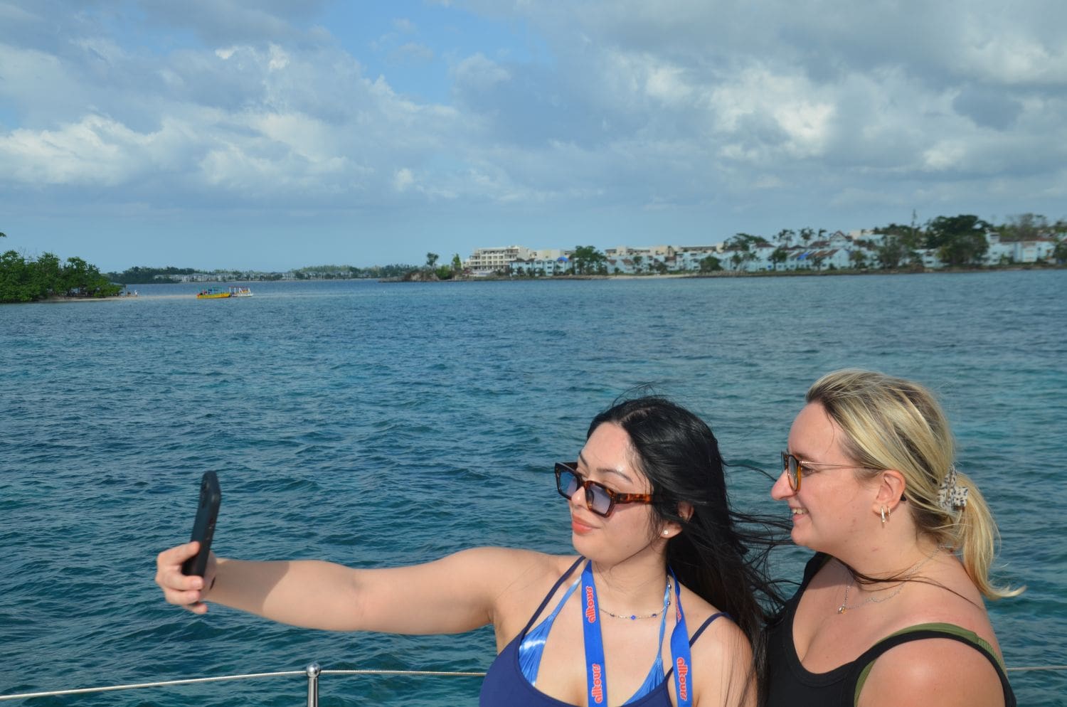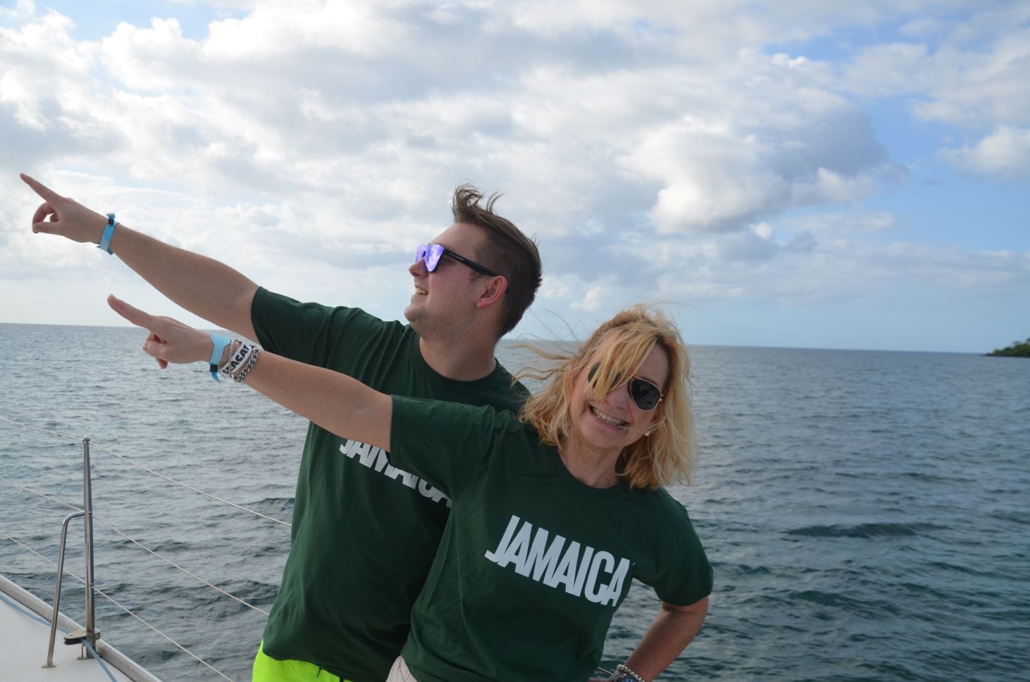 Die Katamaran-Tour zeigt die Küste bei Negril. Foto: Sylvia RaschkeJamaika ist für Alltours-Außendienstlerin Bettina Fenzlein ein Premierenziel. Foto: Sylvia RaschkeMarius Michaelis, Alltours-Hoteleinkäufer für die Karibik, wird von der jamaikanischen Presse interviewt. Foto: Sylvia RaschkeAuch wenn Usain Bolt schon lange nicht mehr schnell läuft, diese Pose werden die meisten kennen. Foto: Sylvia RaschkeSelfie-Time für Mayshana Greis (links) und Laura Ley. Foto: Sylvia RaschkeIn Negril dürfen die Hotels nicht höher als die Palmen gebaut werden. Foto: Sylvia RaschkeFeinsandiger Strand am Seven Mile Beach in Negril. Foto: Sylvia RaschkeEin Regenbogen mit Symbolwirkung. Foto: Sylvia RaschkeGruppenbild am Negril-Schild. Foto: Sylvia RaschkeKennen sich schon länger: Alltours-Außendienstlerin Bettina Fenzlein und Bettina Dunker. Foto: Sylvia RaschkePalladium-Resort: Pool für Große … Foto: Sylvia RaschkeDie zwei nebeneinanderliegenden Palladium-Hotels bestehen aus dreistöckigen Gebäuden. Foto: Sylvia RaschkePalladium unterstützt die Passion Basic School & Day Care. Foto: Sylvia RaschkeHaare haben eine große Wirkung auf kleine Mädchen … Foto: Sylvia RaschkeHoteleinkäufer Marius Michaelis mit dem Bürgermeister von Montego Bay, Richard Vernon, auf dem Dach des Rathauses. Foto: Sylvia RaschkeIberostar deckt für eine schöne Abendveranstaltung am Strand ein. Foto: Sylvia RaschkeAlle Teilnehmer gemeinsam hinter dem One-Love-Schild. Foto: Sylvia RaschkeFünf Teilnehmer hinter dem One-Love-Schild. Foto: Sylvia RaschkeAlltours-Außendienstlerin Bettina Fenzlein. Foto: Sylvia RaschkeMorgenstimmung am Iberostar-Strand. Foto: Sylvia RaschkeTourismusminister Edmund Bartlett in Ocho Rios. Foto: Sylvia Raschke