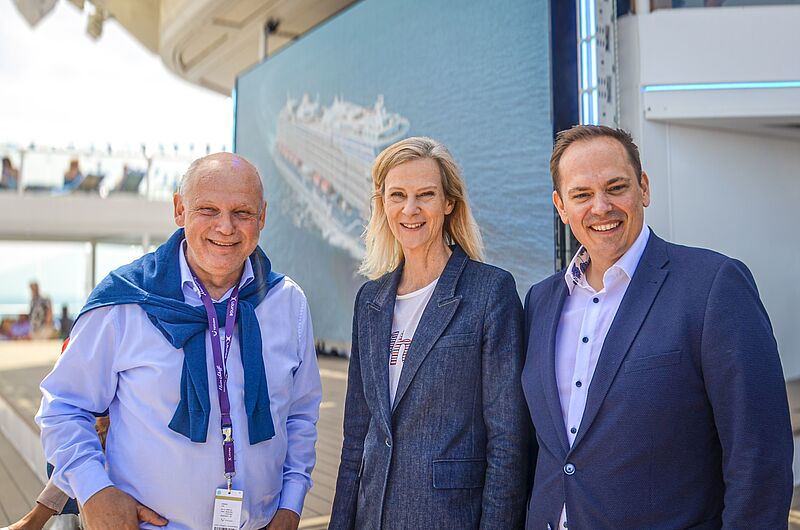 Taufe Mit Star-Power: Am Mittwoch wurde im Hafen von Malaga die Mein Schiff Relax mit einem riesigen Spektakel und einem Konzert von Superstar Robbie Williams getauft. Fast 15.000 Menschen waren dabei. Foto: Max Rempe/TUI CruisesAuftritt von Robbie Williams. Foto: Max Rempe/TUI CruisesAuftritt von Robbie Williams. Foto: Max Rempe/TUI CruisesAuftritt von Robbie Williams. Foto: Max Rempe/TUI CruisesDie Mein Schiff Relax ist das erste Schiff der neuen Baureihe Intuition. Foto: Christian Wyrwa/TUI CruisesStellten sich den Gästen auf dem Pooldeck vor: TUI-Cruises-Chefin Wybcke Meier, TUI-CEO Sebastian Ebel (links) und Denis Wiechert (Vice President Product Management & Guest Experience). Foto: rasRebekka Nicknig (Euresa Reisen, Saarburg) im Tuk-Tuk auf der neuen Mein Schiff Relax. Foto: rasÜber 12.000 Gäste bewunderten das Feuerwerk. Foto: Christian Wyrwa/TUI CruisesTaufpatin Giuliana Rizzo auf der Bühne. Foto: Franziska Krug, Getty Images/TUI CruisesGäste auf dem Pooldeck. Foto: rasClas Eckholt, Vice President Commercial von TUI Cruises. Foto: rasE-Hoi-Geschäftsführer Nicolay Merkt. Foto: rasKim Wichler (Frankenland Reisen, Burgpreppach) und Max Albert (Reisewelt Fröhlich, Würzburg). Foto: rasGanz in seinem Element: Tim Roth, Kapitän der Mein Schiff Relax (links), erklärt TUI-Aufsichtsratschef Dieter Zetsche (v.l.), TUI-Vorstand David Schelp (Markets + Airline) und Marco Ciomperlik die Besonderheiten der Brücke. Foto: rasSandra Pfützenreuter, Head of Sales DACH & Trade Marketing, war mit Top-50-Verkäufern an Bord, hier Uwe Wenglikowski (Geschäftsführer Kozica Reisen, Essen). Foto: rasTom Reiter (Geschäftsführer Kreuzfahrtberater.de). Foto: ras