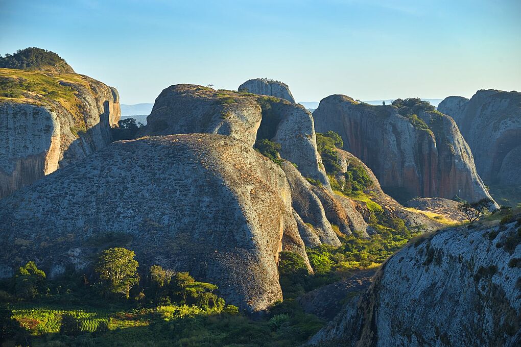 Wer Angola bereist, erlebt eine außergewöhnliche Vielfalt: Die Kalandula Falls sind die zweitgrößten Wasserfälle Afrikas und stürzen mit gewaltiger Kraft in die Tiefe. Die Felsformationen der Pedras Negras de Pungo Andongo verleihen der Landschaft eine fast mystische Atmosphäre. Safari-Erlebnisse bietet der Kissama-Nationalpark, in dem Elefanten, Giraffen, Antilopen und Zebras leben.