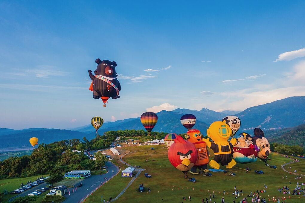 Von Micky Mouse bis zur Kuh: Beim Heißluftballonfestival steigen fantasievolle Ballons auf. Foto: Taiwan Tourism Administration (TTA)