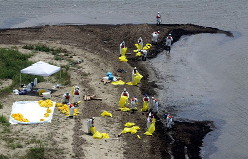 Erstmals wurde jetzt im ökologisch sensiblen Marsch- und Sumpfland von Louisiana eine große Menge Öl an Land gespült. Nach offiziellen Angaben ist zu erwarten, dass noch mehr Schweröl die Küste verpestet. Noch immer schwimmen Millionen Liter im Meer, die sich durch starke Strömungen im Golf von Mexiko zunehmend ausbreiten.