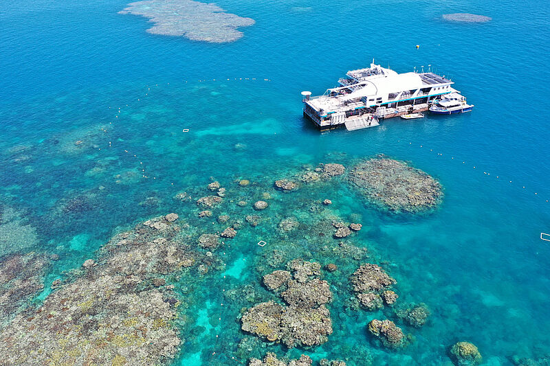 Die Plattform ist dreistöckig und 1.000 Quadratmeter groß. Neben dem touristischen Zweck wurde in dem gut fünf Millionen Euro teuren Ponton auch ein wissenschaftliches Labor für die Forschung am großen Riff integriert.