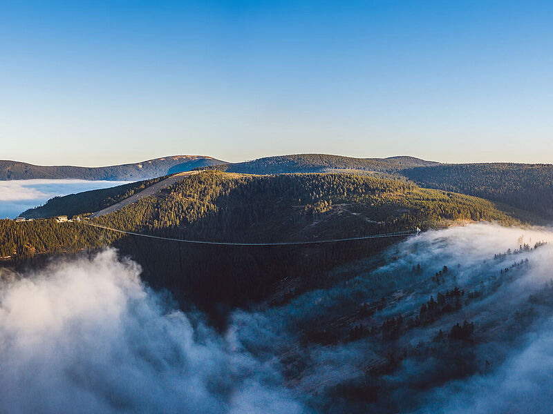 Am 13. Mai öffnet in Tschechien in Dolni Morava an der Grenze zwischen Ostböhmen und Mähren die längste Hängebrücke der Welt. Die Sky Bridge 721 verbindet auf 721 Metern den Gebirgskamm Slamnik mit dem Gebirgskamm Chlum über das Tal von Mlynicke udoli in einer Höhe von 95 Metern. Die Brücke ist eine Einbahnstraße, die auf einer Höhe von 1.110 Metern betreten und auf 1.116 Metern verlassen wird.
