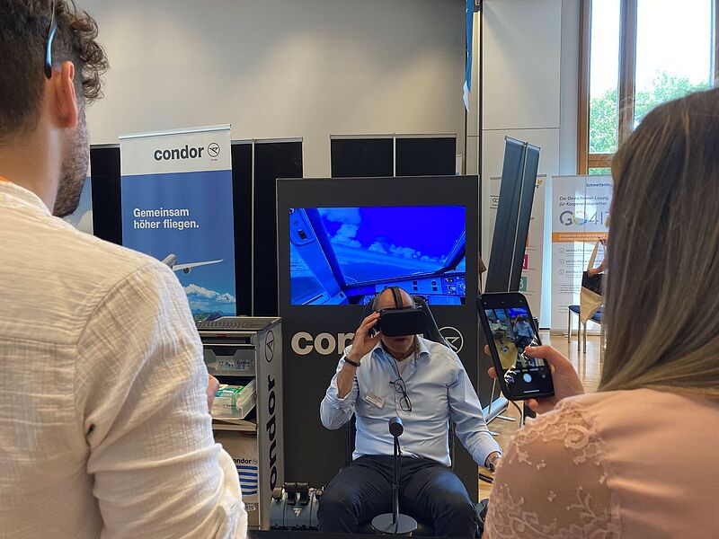 Auch einen A320 konnten die Messebesucher fliegen. Im Bild: Johannes Geissler von Alpha-Reisebüropartner. Foto: uf