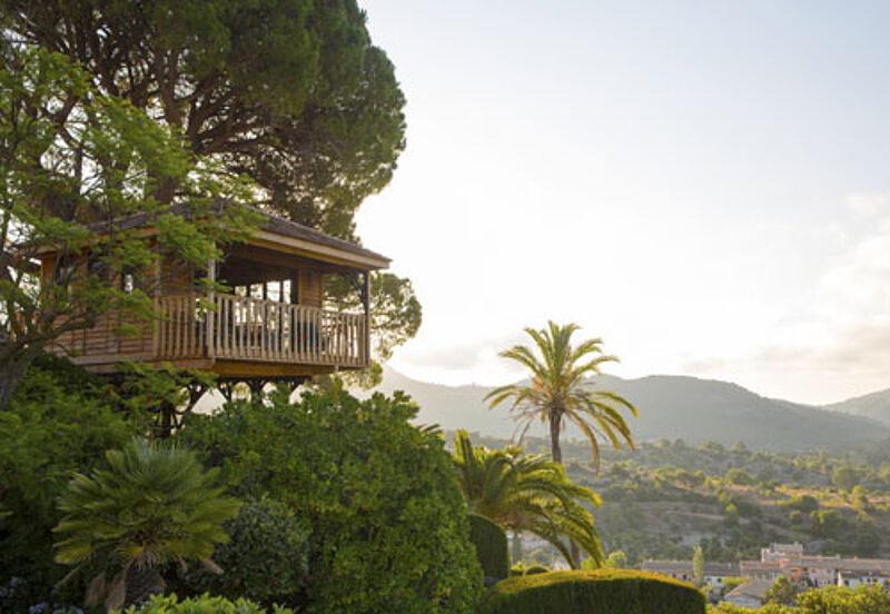 Das Luxusdomizil Gran Hotel Son Net im Westen Mallorcas hat das nach eigener Aussage erste luxuriöse Baumhaus auf der Balearen-Insel eröffnet. Es bietet Gästen einen einmaligen Blick auf die Gebirgskette der Sierra de Tramuntana und das Dorf Puigpunyent.