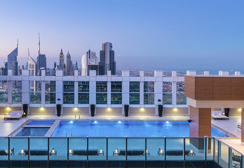 Die amerikanische Kette Starwood ist mit dem sechsten Sheraton-Haus in Dubai vertreten: Das Sheraton Grand Hotel nimmt einige Stockwerke eines Gebäudes mit 54 Stockwerken ein und bietet 416 Zimmer, 58 Suiten sowie 180 Apartments. Zur Ausstattung des Hauses zählen zudem drei Restaurants und Lounges, ein Pool auf der Dachterrasse, ein Spa mit Sauna, Eisfontäne und Indoor-Pool, sechs Tagungsräume mit Tageslicht, ein Ballsaal sowie ein Businesscenter.