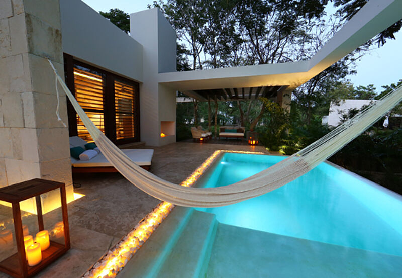 Der nächste Neuzugang eröffnet im November: Das Chable Spa & Resort liegt mitten im Maya-Dschungel südwestlich von Yucatans Hauptstadt Merida. Auf einer 300 Hektar großen Fläche befinden sich 38 freistehende Villen mit Privat-Pool, Outdoor-Dusche und Terrasse. Herzstück des Hotels ist das Spa. Zum Luxusdomizil gehören zwei Restaurants, ein Weinkeller und die nach Eigenangaben größte private Tequila-Sammlung Mexikos.