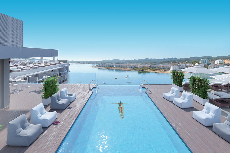 Die Adults-only-Kette Amare, die zur andalusischen Kette Fuerte Hotels gehört, wird zum Sommer ihr zweites Hotel eröffnen. Das Amare Beach Hotel Ibiza liegt in direkter Strandlage in der Cala de Bou und hat 366 Zimmer, von denen 80 Prozent Meerblick bieten. Zum Domizil gehören außerdem zwei Pools, zwei Restaurants, ein Spa-Bereich und als Highlight eine Rooftop-Bar. Im Fitness-Raum, der rund um die Uhr geöffnet ist, können die Kunden mit direktem Meerblick trainieren.