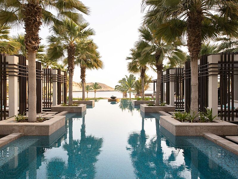 Die Luxushotelkette Jumeirah zeigt erstmals Flagge im Oman. Das neue Jumeirah Muscat Bay liegt nur 15 Minuten von der Hauptstadt Muscat entfernt in der Bucht von Bandar Jissah zwischen dem Hajar-Gebirge und dem Golf von Oman.