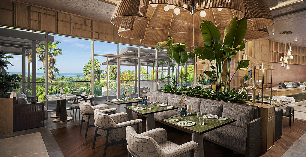 Die Lobby wurde mit einer zusätzlichen zweiten Ebene erweitert, die mit ihren Meerblick-Terrassen die beste Aussicht in gemütlicher Atmosphäre bietet.
