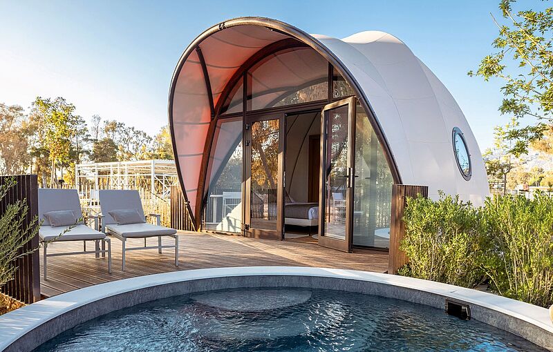 Die griechische Gruppe Domes hat ein besonderes Resort an der so genannten Athener Riviera, der Küste in der Nähe von Athena, eröffnet. Das 91 Athens Rivera thront auf einem ruhigen Hügel und ist ein Adults-only-Resort mit 28 „Luxents“. Unter „Luxents“ versteht Domes eine Mischung aus Luxus und Tents. Diese sind jeweils 43 Quadratmeter groß und verfügen nahezu alle über einen privaten Pool auf der Terrasse. Jedes „Luxent“ ist laut Domes hochwertig ausgestattet.