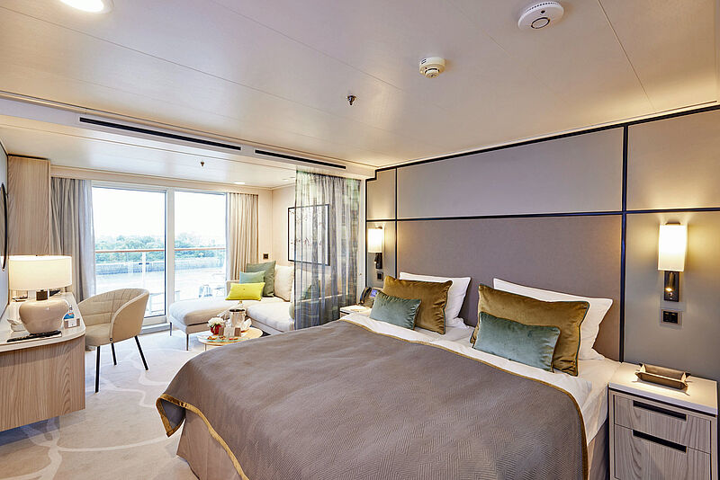 Nach zwei Wochen im Trockendock präsentiert Hapag-Lloyd Cruises nun die renovierte Europa. Insgesamt 56 Veranda-Suiten der Kategorien sechs und sieben erstrahlen im neuen Glanz. So zieren Wände mit Linien in stilvollem Grau und helle Teppiche die Wohnbereiche, die weiße Holzoptik der Möbel und ein einladendes Sofa sollen laut Hapag-Lloyd neue Akzente setzen.