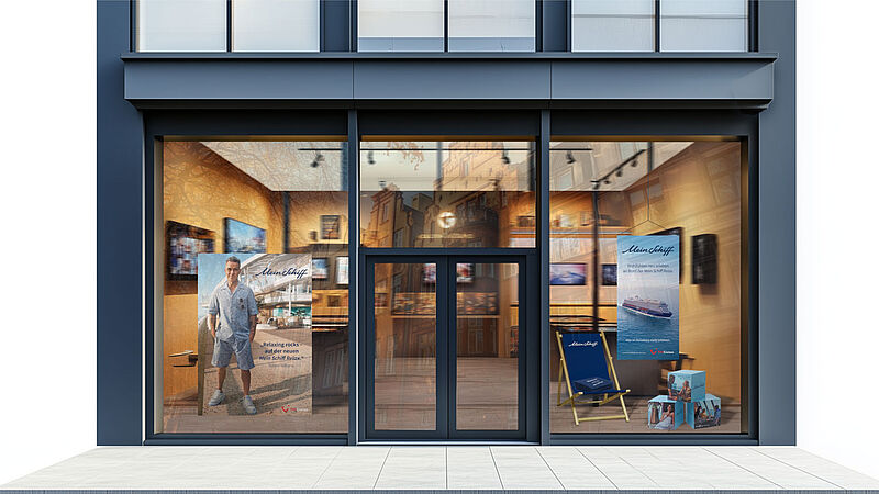 Das limitierte Deko-Paket zum neuen Flottenmitglied Mein Schiff Relax beinhaltet neben dem Aufsteller auch ein Stoffbanner, einen Liegestuhl, ein Strandtuch, Pappwürfel und Augenpads. Es hat einen Wert von 160 Euro und kann gegen eine Schutzgebühr von 49 Euro inklusive Versand im Mein-Schiff-Shop bestellt werden. Die Schaufenster-Deko ist mit Bestandteilen der aktuellen Sales-Post kombinierbar, welche an den Großteil der Reisebüros geschickt wird, wie einem Plakat, Angebotszetteln oder einem Fensterkleber mit Robbie Williams.