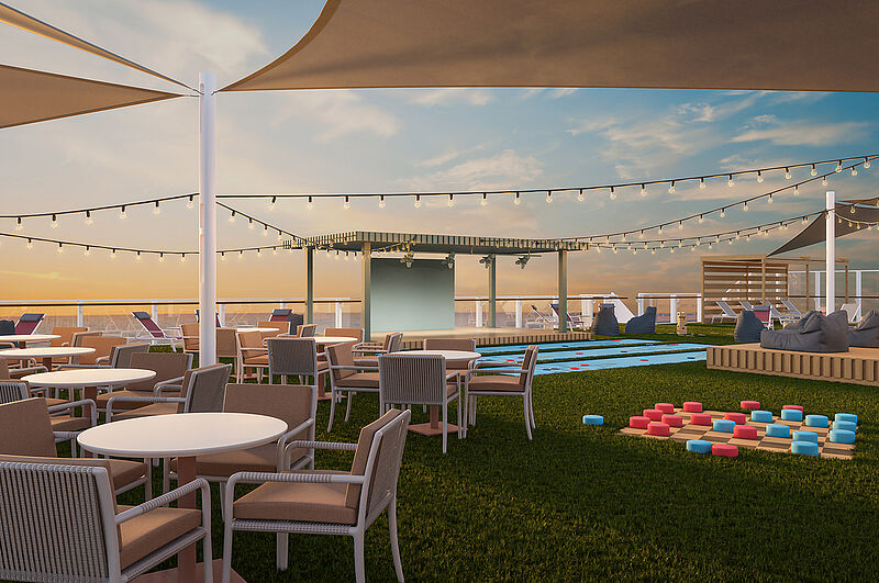 Dieser soll zunächst auf der Bliss, die vom 17. Januar bis 2. Februar umgestaltet wird, eingebaut werden. Wie NCL ankündigt, wird der „vielseitige Treffpunkt“ unter anderem einen Liegebereich und Freiluft-Spiele mit einem „atemberaubenden Blick auf den Ozean“ bieten.