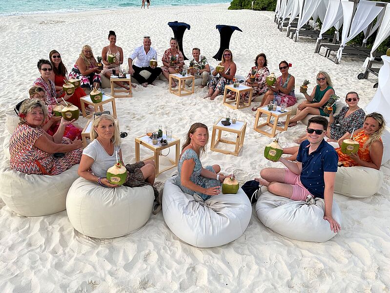 Zwölf Berater waren kürzlich im Robinson-Club Noonu auf den Malediven. Sie erlebten Zwischenflüge mit dem Wasserflugzeug, unternahmen einen Tagesausflug in das Fünf-Sterne-Hotel Sun Siyam Iru Fushi, gingen schnorcheln und sahen Delfine während einer Sundowner-Tour. Abgerundet wurde das Programm durch einen Workshop der Partner Eurowings Discover und Robinson.