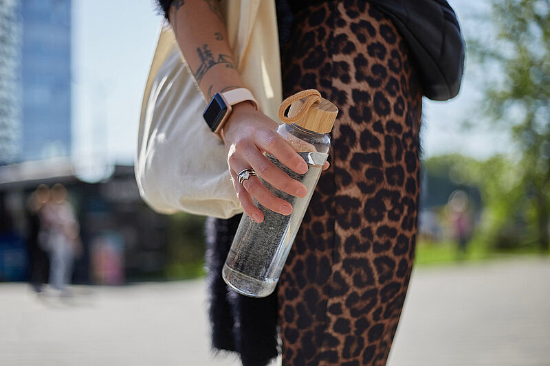 Menschen betreten ein Einzelhandelsgeschäft, um sich dort kostenlos ihre Wasserflasche aufzufüllen. Das soll künftig auch bei den Reisebüro-Partnern von TUI Franchise der Fall sein. Um dies zu ermöglichen, unterstützt die TUI-Vertriebsorganisation für die Marken Hapag Lloyd, TUI Reisecenter und First die deutschlandweite Refill-Initiative.