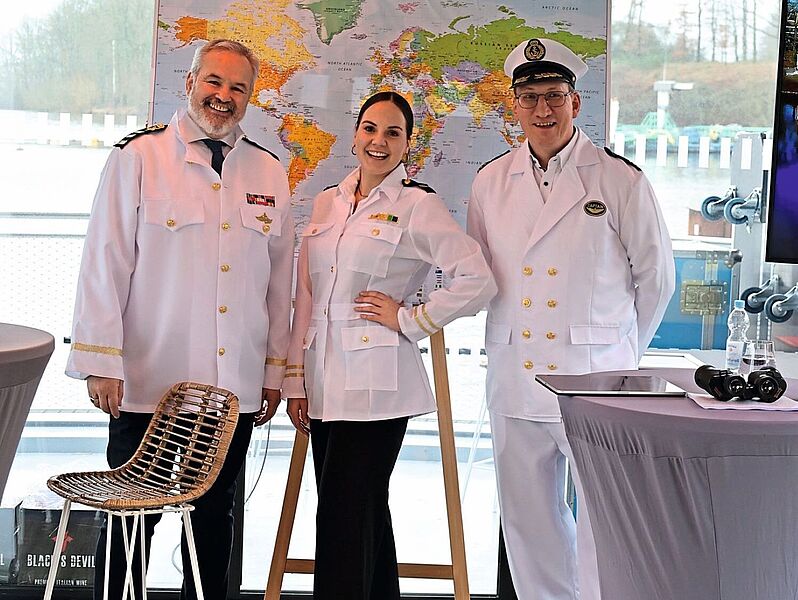 Der Check-in erfolgte im Reisebüro, wo die Teilnehmer mit einem Glas Sekt begrüßt wurden. Mit Bussen ging es zur MS Germann, wo Kapitän Michael Germann und der 1. Offizier, Tourcontact-Chef Dirk Bender, stilecht gekleidet, schon warteten. 120 Teilnehmer sahen die Show live im Hauptdeck, 40 weitere verfolgten die Geschehnisse am Oberdeck auf Bildschirmen.