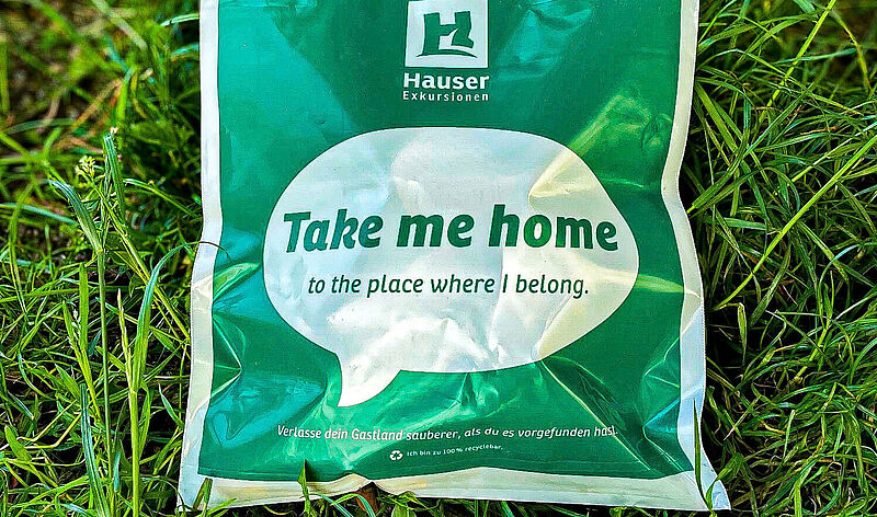 Kunden von Hauser Exkursionen erhalten ab sofort von ihren Reiseleitern einen Müllbeutel mit der Aufschrift „Take Me Home“. Diese seien auslaufsicher, geruchsfrei und bestünden vollständig aus recycelbarer Folie, heißt es in einer Mitteilung des Trekking-Spezialisten. Ziel ist es demnach, im Gastland Abfall zu vermeiden.