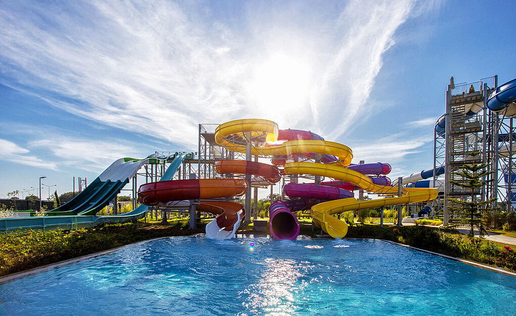 Für Abenteuerlustige und Familien bietet das Resort einen großen Aquapark mit insgesamt acht Wasserrutschen, die für reichlich Spaß und Aufregung sorgen. Ein kinderfreundlicher Pool und der Pool im Mini Club sorgen dafür, dass auch die jüngsten Gäste voll auf ihre Kosten kommen.