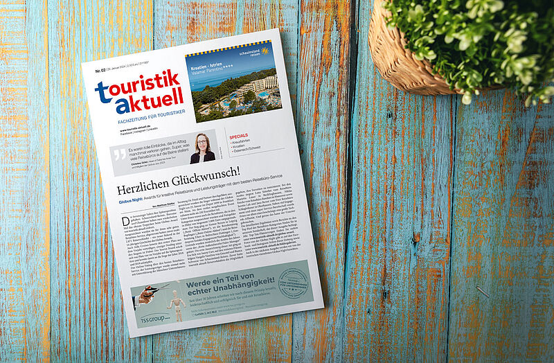 Die Ergebnisse des Globus Awards 2023 stehen im Mittelpunkt der neuen Ausgabe von touristik aktuell (02/2024): In einer Beilage stellen wir ausführlich die jeweiligen Top Fünf der Reisebüro-Kategorien vor und berichten über die Leistungsträger mit dem besten Reisebüro-Service.