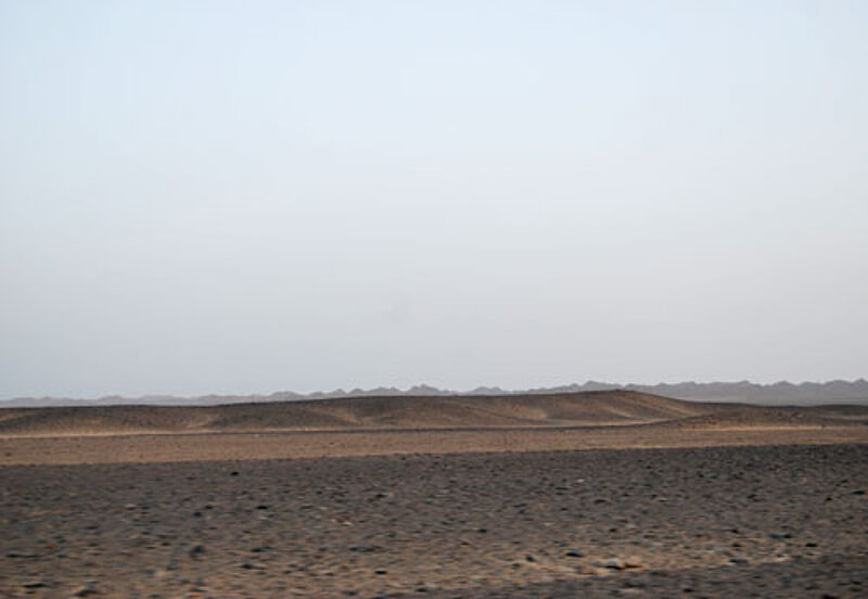 Von der Küstenstraße zwischen Marsa Alam und Berenice am Roten Meer sind wir auf eine Schotterpiste ins menschenfeindliche Nirgendwo abgebogen: graubraune Ödnis bis zum Horizont, plattes, karges Land durchsetzt mit kantigen Gesteinsformationen. Was soll hier noch kommen, außer das Ende der Welt und vielleicht eine Abfahrt "Zum Mond"?