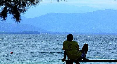 Pulau Sapis beliebteste Fotomotive sind mit Vorsicht zu genießen. Jeden Mittag kriechen die bis zu zwei Meter langen Warane langsam und nahezu lautlos aus dem dichten Gestrüpp der Inselmitte zum...