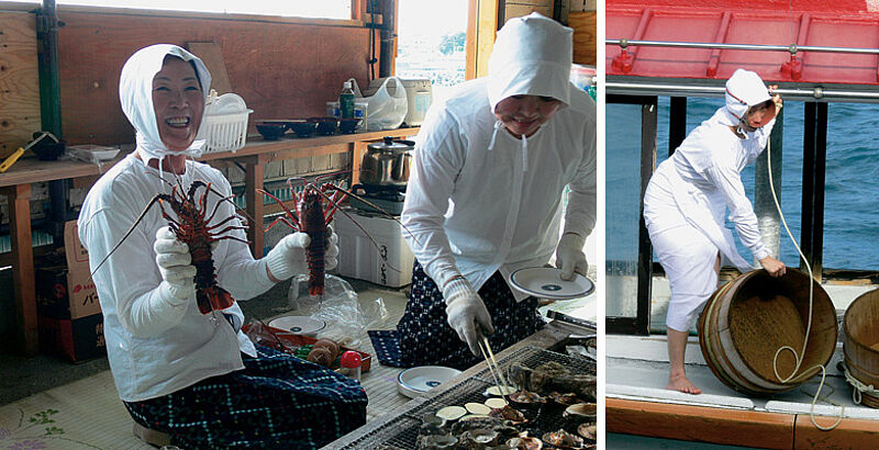 Seit mehr als 2.000 Jahren gibt es den Beruf der „Meeresfrau“, so die Übersetzung, und viel hat sich seither nicht geändert, vom Dresscode einmal abgesehen. Bis in die 1950er Jahre tauchten die Ama noch nackt, dann kamen die weißen Baumwollgewänder auf, die nicht nur Haie abschrecken sollten, sondern auch der neuen Prüderie Genüge taten. Heute benutzen die meisten Ama Neoprenanzüge. Männer sind in diesem Beruf übrigens nicht zu finden: Sie gelten als zu schwach und verfroren.
