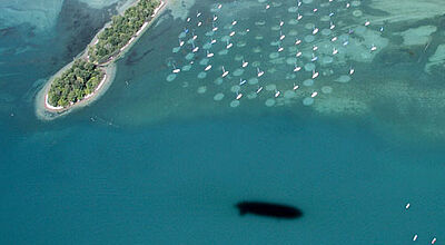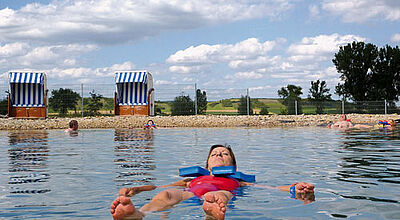 "Das sieht ja hier aus wie nach dem Untergang der Titanic", ruft ein Bub am Steg aus. Der Junge meint die im Wasser treibenden Gestalten mit den Schwimmkragen, die an Rettungswesten erinnern mögen....