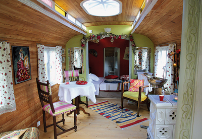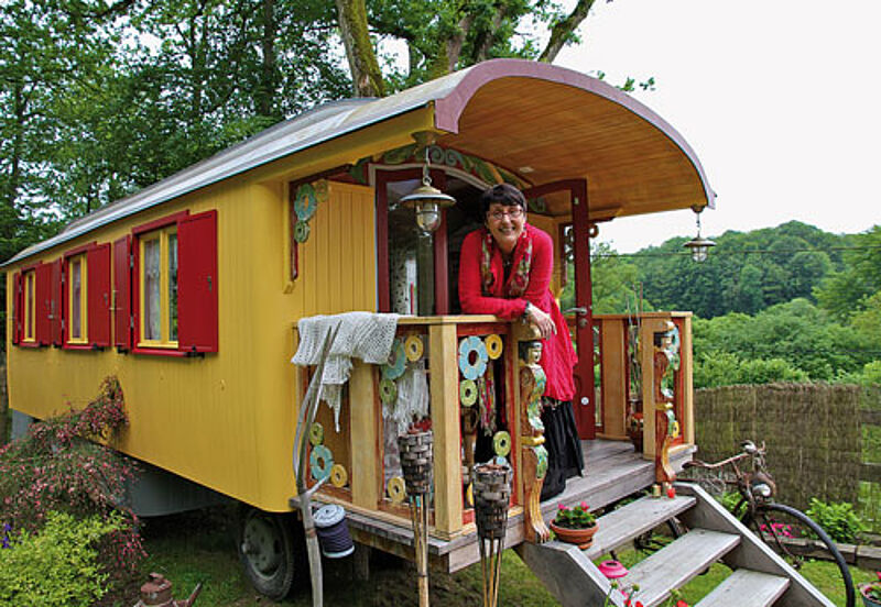 Durch die niedrige Tür treten Urlauber in eine andere Welt: Original Spitze an den Fenstern, ein weißer Kachelofen und ein voller Bücherschrank laden zum gemütlichen Teetrinken ein. "Ich bin so verliebt in meinen Wagen aus den Pyrenäen, da kann nur einer aus meiner Familie Zigeuner gewesen sein", sagt die charmante Madame und lacht.