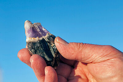 Mit ihrem Blau verzaubern die lappländischen Amethyste aber auch alle, die mit Esoterik nichts am Hut haben. Vor allem, wenn man seinen Glücksstein selbst finden darf.