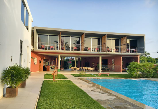 Das kleine Boutique-Hotel im modernen Stil mit vielen afrikanischen Elementen hat nur sechs Zimmer, einen wunderbaren Garten und freundliches Personal. Es ist eines von derzeit 20 Vier- und Fünf-Sterne-Hotels entlang der großartigen Sandstrände Gambias und ein Vorbild in Sachen Qualität und Service: „In diesem Bereich müssen wir hart arbeiten und vor allem die Ausbildung verbessern“, sagt Tourismusminister Hamat Bah.