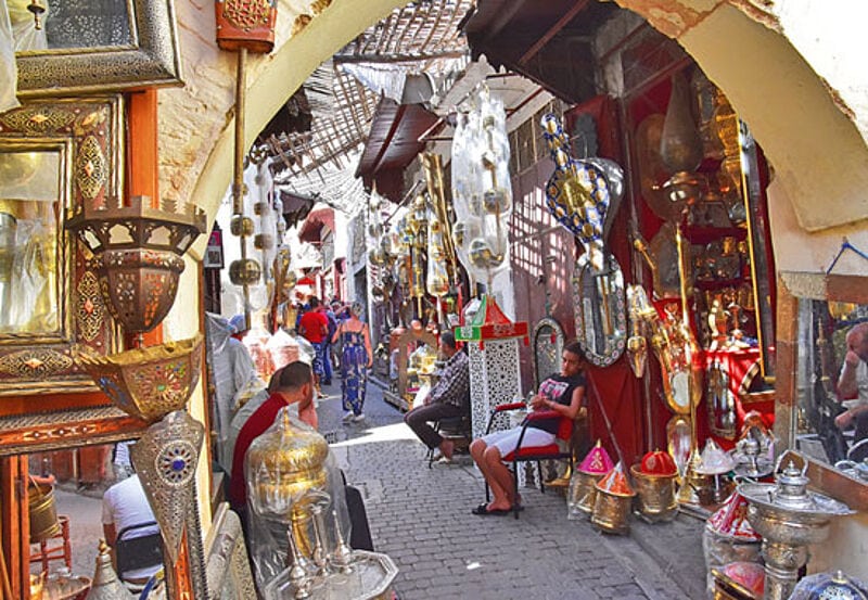 Der Wandel zieht neue Investoren an. Erst vor ‧wenigen Monaten hat Jacob Oliver gleich hinter der berühmten historischen Wasseruhr sein Café Le tarbouche eröffnet. „Die Leute wollen nicht nur Tajine“, sagt der 28-jährige Koch von der englischen Isle of Wright und mixt deshalb munter europäische und marokkanische Klassiker. Im Literatur-Café Clock nebenan servieren sie Kamel-Burger und frischen Minztee auf der Dachterrasse.