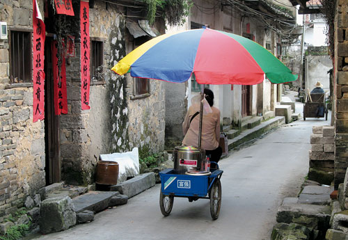 Fächer und anderes Kunsthandwerk werden verkauft, wunderschön bemalt und verziert, von broschenklein bis hin zum riesigen Wandschmuck. Durch die engen Gassen rumpeln Tuk-Tuks mit warmer Suppe. Alte Frauen sitzen auf den schiefen Steinstufen ihrer Häuschen, beobachten überrascht die Besucher, die sich dort abseits der Touristenströme bewegen.