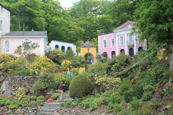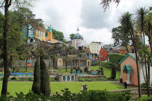 Traumhaft ist es hier, im wahrsten Sinne des Wortes. Im ersten Moment fühlt man sich nach Italien versetzt. Wie eine farbenfrohe Theaterkulisse schmiegen sich die bunten Gebäude den Hang hinab zum Meer. Das von 1925 bis 1975 erbaute, von einem Park umgebene Dorf befindet sich auf einer Halbinsel zwischen zwei Flussmündungen und war das erste Ferien-Resort Großbritanniens.