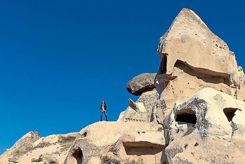 Vor rund 80 Millionen Jahren haben zwei Vulkane diese Region mit ihrer Asche zugedeckt. Über die Jahrtausende hinweg verfestigte sie sich zu Tuffstein, an der Oberfläche hart, darunter weich wie Sandstein. Die Erosion sorgte dann für Formationen, die nahezu einzigartig sind in der Welt. „Etwas ähnliches habe ich bisher nur in Vietnam gesehen“, schwärmt Tourismusminister Mehmet Ersoy, Inhaber der Maxx-Royal- und Voyages-Hotels.