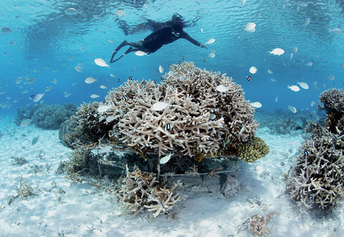 Die Luxusresorts beschäftigen Meeresbiologen, die Besucher über das bedrohte Paradies aufklären. Eine von ihnen ist die Österreicherin Tina Buchegger, die für Huvafen Fushi im Nord-Male-Atoll arbeitet. Sie züchtet unter anderem Korallen an auf dem Meeresgrund stehenden Bänken aus Eisenrohren. Touristen können dort selbst Stücke anbinden, die sich dann zu kleinen Korallenbänken entwickeln.