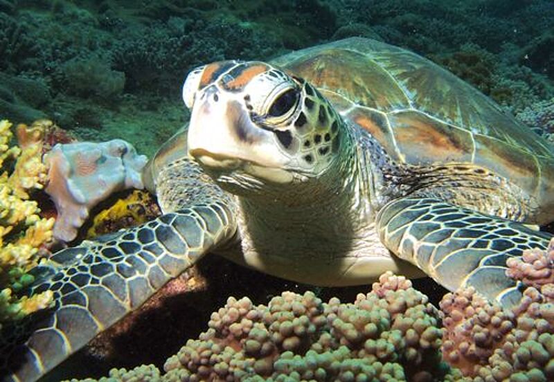 Manche Momente kann man nicht im Foto festhalten, und doch bleiben sie für immer. Nur eine Handbreit von der Taucherbrille entfernt fixieren die dunklen Schildkrötenaugen ihr Gegenüber. Dann taucht sie ab, rudert mit ihren kurzen Vorderbeinen ein Stück vorwärts. Dort verharrt sie, dann verschwindet das Tier, ebenso unvermittelt, wie es gekommen ist.