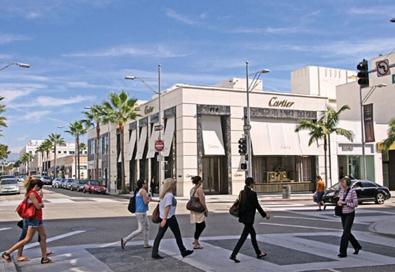 Dabei ist der Rodeo Drive nicht überheblich, Schwellenangst nicht erforderlich. Zwar ist diese Straße mehr als jede andere ein Laufsteg und die Geschäfte sind Bühnen. Aber kein Laufsteg funktioniert ohne Publikum. Schaulust ist Teil der ‧Inszenierung. Und auch wenn Couturier Bijan kaum jemanden in seinen Laden ließ, sind neugierige Blicke durchs Schaufenster doch durchaus erwünscht. Sie gehören ebenso zum Gesamtkonzept dieser Straße wie die Menschen, die sich gegenseitig ein Stück weiter vor dem Straßenschild mit dem goldenen Schriftzug „Rodeo Drive“ fotografieren.